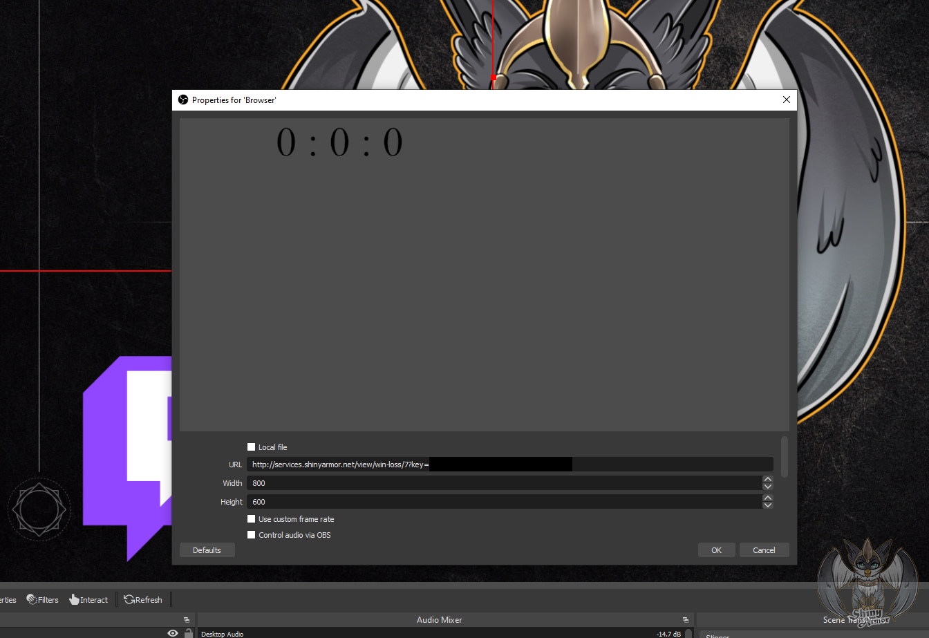 Once in your browser source settings, copy and paste the URL, which you can find in your dashboard.